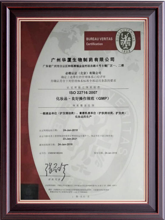 公司始創(chuàng)建于2012年,經(jīng)過八年的健康發(fā)展,已經(jīng)成為可以從事妝字號、消字號、械字號等系列產(chǎn)品生產(chǎn)加工的大型企業(yè)。企業(yè)坐落在美麗的廣州白云區(qū)鐘樓潭鎮(zhèn),擁有面積超過15,000平方米的生產(chǎn)廠房。廠房寬敞明亮,設(shè)計(jì)科學(xué)新進(jìn),擁有十萬級的生產(chǎn)車間,局部環(huán)境可以達(dá)到一萬級別;設(shè)備多采用新進(jìn)的進(jìn)口設(shè)備,自動化程度非常高,擁有一流的生產(chǎn)設(shè)施。工廠同時通過了ISO22716和GMCP質(zhì)量管理認(rèn)證,擁有一流的質(zhì)量管理體系。廠